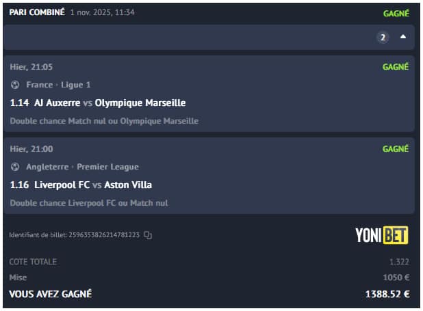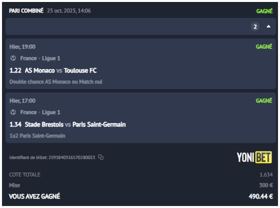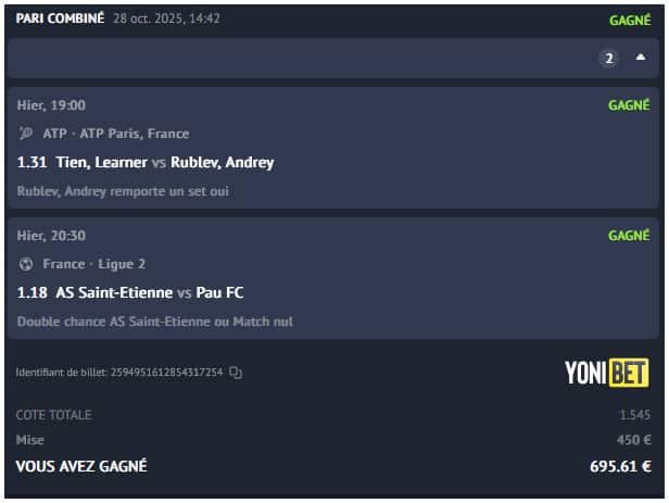 Voici nos 5 tickets validés pour cette montante paris sportifs pour cette nouvelle saison dans la partie VIP du site ( espace privé disponible en accÚs simple ou par abonnement ).