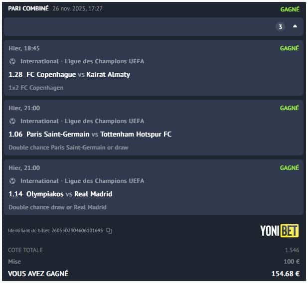 Cote du combiné pour ce palier : 1.54